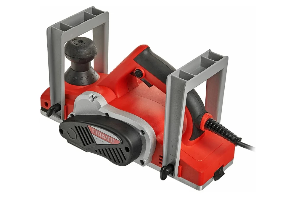Регулировка глубины строгания от 0 до 3 мм с помощью передней рукоятки и клинового механизма обеспечивает точность и удобство в работе.