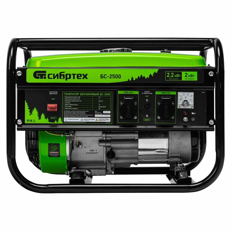 Генератор бензиновый БС-2500, 2.2 кВт, 230В, четырехтактный, 15 л, ручной стартер Сибртех