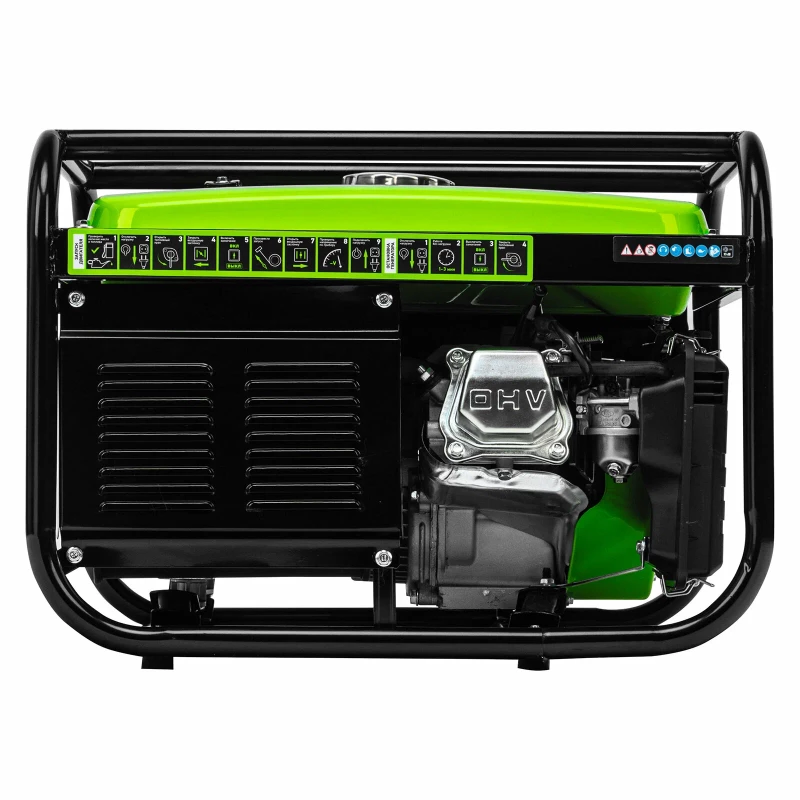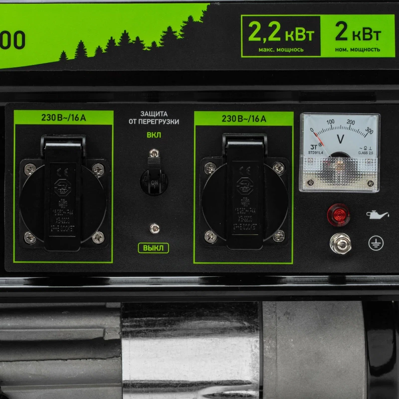 Бензиновый генератор Сибртех БС-2500 94542 на 230 В, максимальной мощностью 2,2 кВт, с 4-тактным двигателем и баком объемом 15 л, идеально подходит для использования на даче, на природе или в мастерской. Небольшой вес 34,5 кг и компактность позволяют легко перевозить и брать его с собой. Мощности 2 кВт достаточно для одновременного подключения холодильника и микроволновой печи. ПреимуществаРабота без скачков напряжения — благодаря блоку AVR к генератору можно подключать даже чувствительную технику. Простая эксплуатация — все элементы управления расположены на передней панели. Контроль рабочих параметров — встроенный вольтметр позволяет отслеживать напряжение в сети, а топливный индикатор — уровень бензина в баке. Защита поршневой группы — специальный датчик не допускает старт генератора с низким уровнем масла в картере. Низкий расход топлива — бака объемом 15 л хватает на 12,5 ч работы без дозаправки. Надежность — защита от перегрузки и короткого замыкания продлевает срок службы генератора. Стабильная работа двигателя — система воздушного охлаждения обеспечивает эффективный отвод тепла. Прочная конструкция — стальная рама надежно защищает генератор от повреждений.