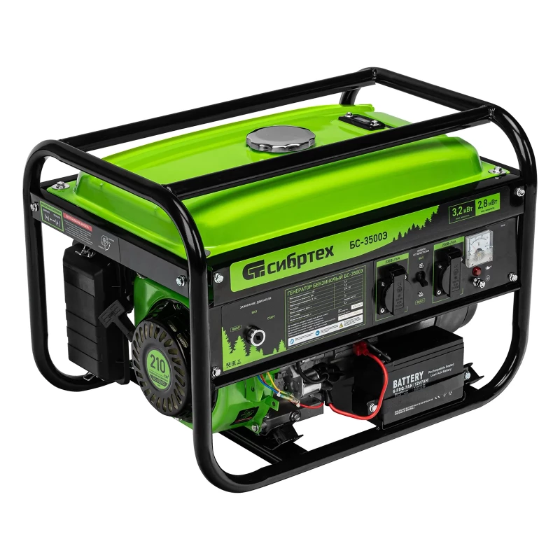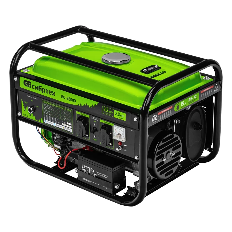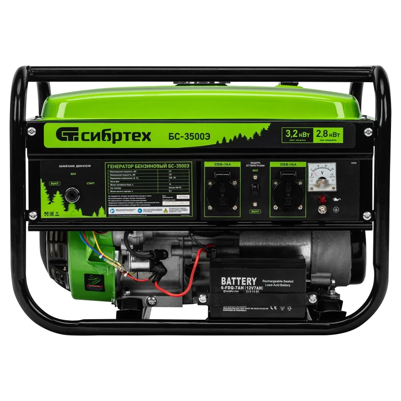 - Наименование Генератор бензиновый БС-3500Э, 3.2 кВт, 230В, 4-х тактный, 15 л, электростартер Сибртех