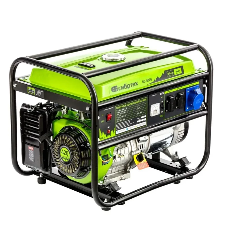 Купить инструмент Генератор бензиновый БС-8000, 6,6 кВт, 230В, четырехтактный, 25 л, ручной стартер Сибртех в Норильске по цене 47790 рублей. Смотрите другие 82 товаров в разделе Электростанции бензиновые по ценам от 7243 до 363390 рублей. Родительская категория - Силовое оборудование. Производитель - Сибртех.