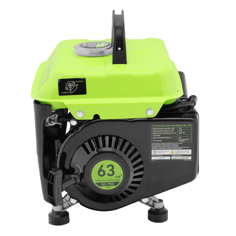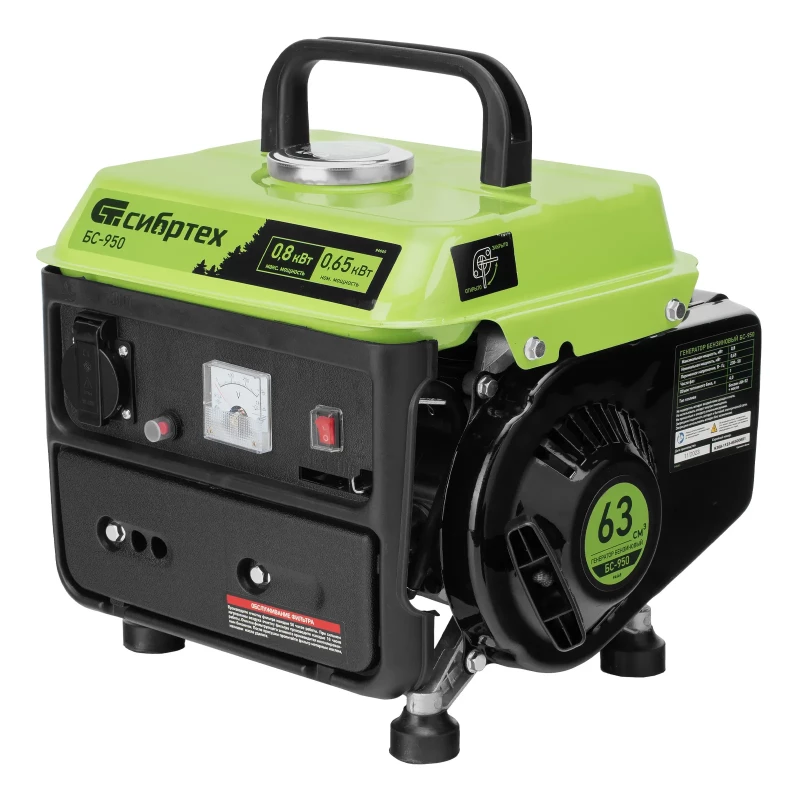 Купить инструмент Генератор бензиновый БС-950, 0.8 кВт, 230 В, 2-х тактный, 4 л, ручной стартер Сибртех в Норильске по цене 7243 рублей. Смотрите другие 82 товаров в разделе Электростанции бензиновые по ценам от 7243 до 363390 рублей. Родительская категория - Силовое оборудование. Производитель - Сибртех.