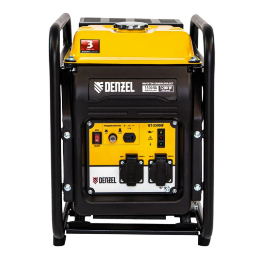 Генератор инверторный GT-3500iF, 3.5 кВт, 230 В, бак 5 л, открытый корпус, ручной старт Denzel