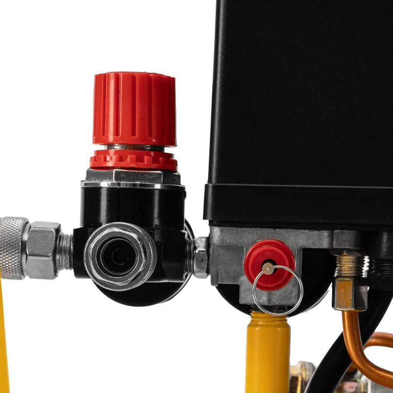 Воздушный компрессор с прямым приводом Denzel DCV1800/50 58168 мощностью 1,8 кВт и производительностью на входе 320 л/мин, с объемом ресивера 50 л, подходит для обеспечения длительной работы пневмогайковерта, пневмозубила, пневмодрели, пневмомолотка или другого пневмоинструмента. Быстроразъемные коннекторы Рапид (Евро) облегчают подключение пневмомагистралей. Эффективная система смазки снижает износ деталей и уменьшает нагрузку на двигатель, что позволяет использовать компрессор в профессиональной сфере. Преимущества Надежность и долговечность — коленвал и цилиндры изготовлены из чугуна, ресивер сварен из стальных листов толщиной 2,5 мм. Безопасная эксплуатация — при перегреве и перегрузке автоматически срабатывает аварийное отключение. Защита от превышения допустимого давления — производитель предусмотрел предохранительный клапан. Автономность — прессостат останавливает двигатель по достижении максимального рабочего давления и запускает его, если давление опускается до минимального. Высокое качество изготовления — детали картера в местах стыка прошли механическую обработку с дополнительной шлифовкой, поэтому риск протечки масла минимален. Улучшенный теплоотвод — оребренные трубки воздуховода обеспечивают эффективное охлаждение поступающего в ресивер воздуха. Тщательная фильтрация воздушного потока — уплотнители на фильтрах исключают попадание пыли в цилиндры. Контроль давления и расхода воздуха — компрессор оснащен регулятором и двумя манометрами. Быстрое удаление конденсата — для откручивания сливной пробки с подпальцевыми упорами не требуется специальный инструмент. Комфортная эксплуатация — амортизирующие опоры снижают уровень вибрации. Удобное перемещение по рабочей площадке — конструкцией предусмотрены колеса и рукоятка. Гарантия 3 года — высокое качество компрессора подтверждено производителем.