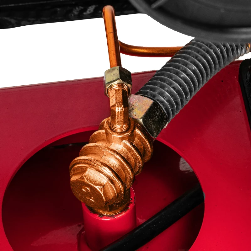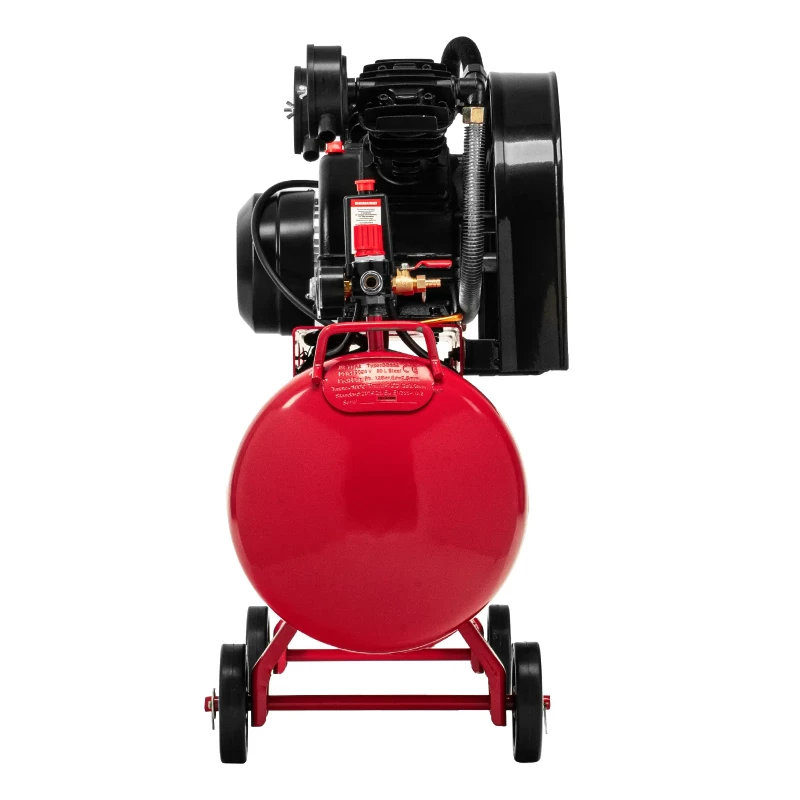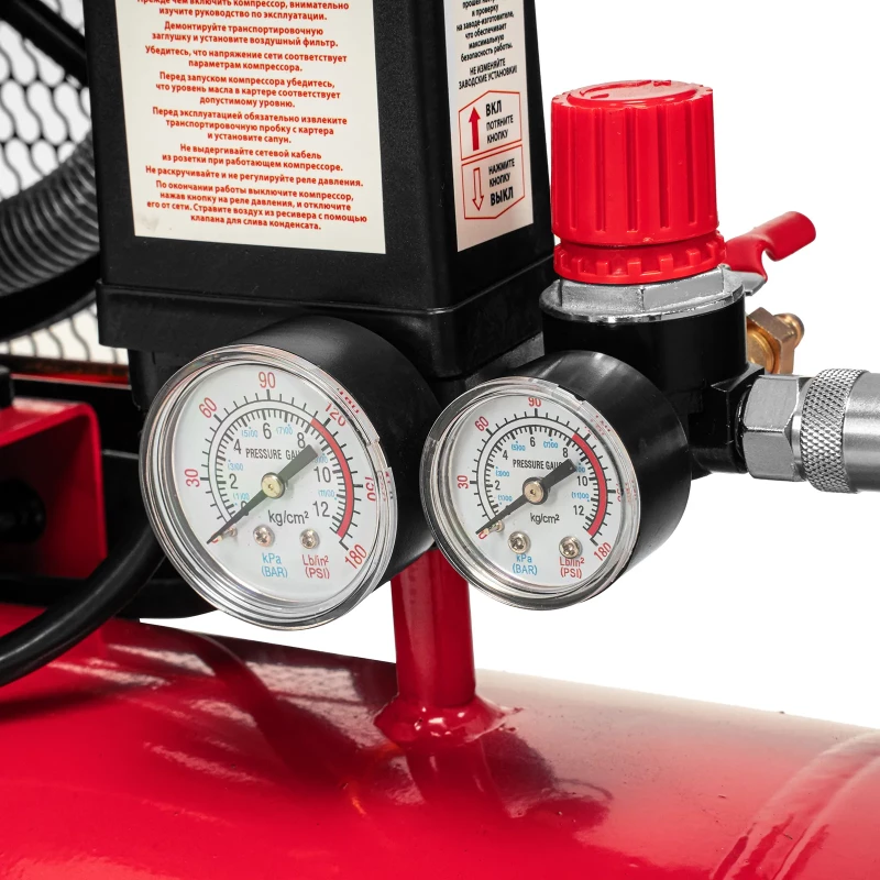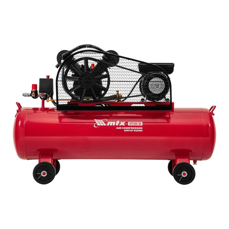 Компрессор воздушный МТХ КР2500/80 58022 с ременным приводом от электродвигателя, мощностью 2,5 кВт и производительностью 420 л/мин, с ресивером объемом 80 литров, применяется для подачи сжатого атмосферного воздуха к пневматическому инструменту. К нему можно подключить гайковерт, дрель, углошлифовальную машину, степлер, краскопульт, продувочный пистолет или другой пневмоинструмент. Для подключения предусмотрены 2 штуцера: быстросъемный и «елочка». Компрессор подходит для профессионального использования на предприятии автосервиса, строительной площадке, в мастерской. ПреимуществаТермозащита — при перегреве электропитание автоматически отключается, обмотки статора размыкаются, что позволяет сохранить ресурс двигателя. Защита от перегрузки — при превышении максимально допустимой величины тока компрессор отключается для предотвращения поломки. Безопасная эксплуатация — предохранительный клапан не допускает превышения максимально допустимого давления в ресивере. Автоматическая регулировка производительности — прессостат останавливает двигатель при достижении максимального рабочего давления (8 бар) и запускает его при падении давления ниже минимально допустимого уровня. Повышенный ресурс — блоки цилиндров из чугуна выдерживают длительную эксплуатацию, дополнительные ребра на них повышают эффективность охлаждения. Износостойкость — благодаря увеличенной емкости масляного картера все детали воздушного компрессора обеспечены достаточной смазкой. Удобный контроль давления в ресивере и пневмомагистрали — компрессор оснащен двумя механическими манометрами. Простая подготовка к работе — подключение пневмоинструмента к быстросъемному коннектору занимает несколько секунд. Мобильность — колеса и рукоятки облегчают перемещение компрессора по рабочей площадке. Готовность к работе — в комплект поставки входит сапун и компрессорное минеральное масло марки L-DAB 68 (250 мл).