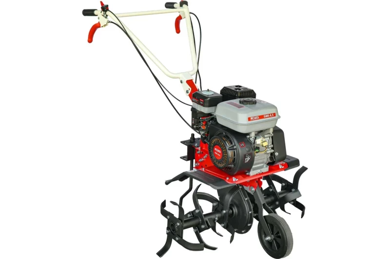 Предназначен для рыхления и культивирования небольших участков земли. Ширина обработки: 85 cм; Глубина обработки: 15 см; Диаметр фрез: 30 см; Мощность двигателя: 6,5 л.с; Объем топливного бака: 3,6 л; Двигатель: бензиновый, четырехтактный; Вид топлива: бензин АИ-92; Мощность: 4780 Вт; Редуктор: ременной; Количество скоростей: 1 вперед/1 назад. Модель оснащена цепным редуктором и хромированной поршневой группой, для более надежной работы инструмента. Почва, даже самая тяжелая, легко обрабатывается благодаря закаленным фрезам. Для безопасности в процессе работы предусмотрены защитные крылья, они предотвращают вылет земли и камней в оператора.