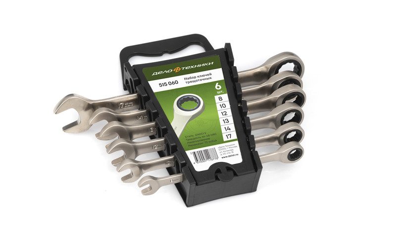 Купить инструмент Набор ключей комбинированных трещоточных 6 шт., холдер в Норильске по цене 2166 рублей. Смотрите другие 391 товаров в разделе Ключи комбинированные по ценам от 47 до 17112 рублей. Родительская категория - Слесарный инструмент. Производитель - Дело Техники.