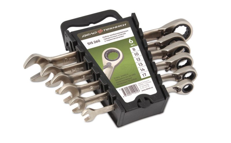 Купить инструмент Набор ключей комбинированных трещоточных с переключателем 6 шт., холдер в Норильске по цене 3045 рублей. Смотрите другие 391 товаров в разделе Ключи комбинированные по ценам от 47 до 17112 рублей. Родительская категория - Слесарный инструмент. Производитель - Дело Техники.