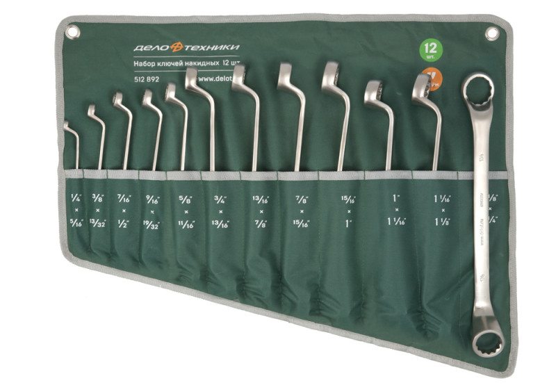 Набор ключей накидных дюймовых, 12 шт., планшет тетрон.