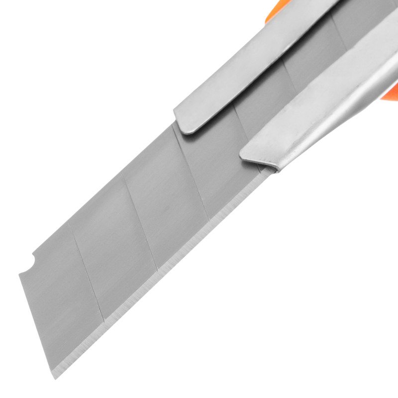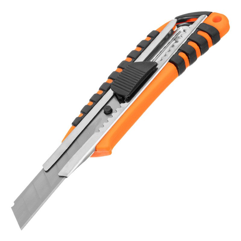 Нож, 18 мм, выдвижное лезвие, металлическая направляющая, пластиковый двухкомпонентный корпус Sparta