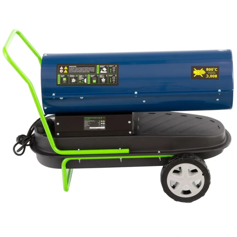 Дизельная тепловая пушка Сибртех СТД-30 96468 мощностью 30 кВт и производительностью 750 м³/ч предназначена для прямого нагрева воздуха в цехах, ангарах, теплицах и на строительных объектах. Устройство обеспечивает быстрый прогрев и позволяет размораживать грунт, просушивать стены и подогревать бетон. Надёжный дизельный двигатель и прочный металлический корпус рассчитаны на интенсивную эксплуатацию. Пушка оснащена термостатом и защитой от перегрева, а для переноски предусмотрена удобная ручка.