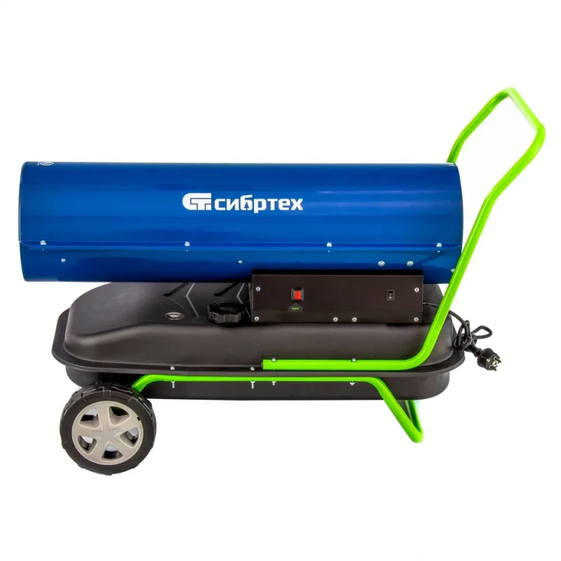 Самая мощная 50 кВт в своей линейке дизельная тепловая пушка Сибртех СТД-50 легко обогреет нежилое помещение с объемом воздуха до 1600 м3. Также с ее помощью можно ускорить и облегчить строительные работы в холодную погоду, т. к. она подходит для просушивания стен, подогрева бетона и разморозки траншей. Пушка быстро и эффективно справляется с обогревом помещений благодаря мощному потоку воздуха 1100 м3. Увеличенный бак объемом 38 л и экономичный расход топлива 4,2 л/ч обеспечивают работу в течение 9 часов без дозаправки.
