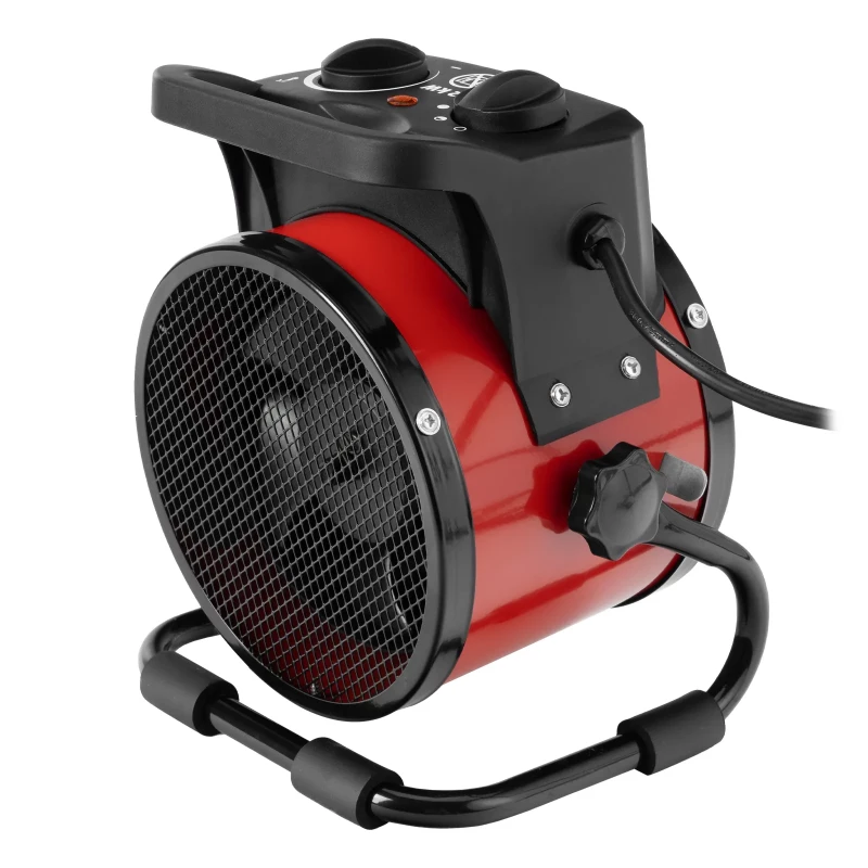- Эргономичность — компактная тепловая пушка весит 1,4 кг, удобная рукоятка упрощает перемещение.