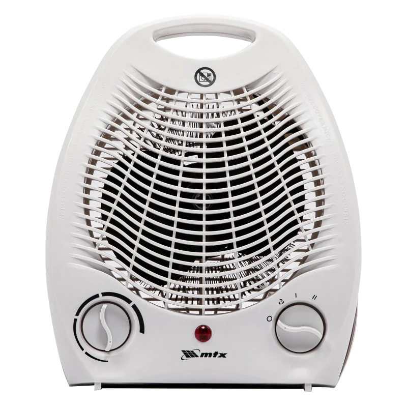 Электрический тепловентилятор MTX FHS-2000 96413 мощностью 1000/2000 Вт, с нагревателем спирального типа и вентилятором, имеет 3 режима работы и используется для обогрева комнат площадью до 20 кв. м в квартире или на даче. Его можно применять для поддержания необходимой температуры в помещении в холодную погоду, а также для вентиляции в жару. Устройство устанавливают на полу или на столе, управление осуществляется при помощи 2 механических переключателей.ПреимуществаУдобная регулировка — можно установить один из трех режимов работы: вентиляция (без нагрева), теплый воздух (потребляемая мощность 1 кВт), горячий воздух (2 кВт).Встроенный термостат — заданная температура поддерживается автоматически, без участия пользователя.Двухуровневая защита — биметаллический элемент не допускает поломки нагревательной части, отключая тепловентилятор при перегреве, а контрольный тепловой резистор обеспечивает аварийную противопожарную защиту.Электрическая спираль — тепловентилятор быстро нагревает воздух и отличается более низкой стоимостью по сравнению с аналогами, имеющими керамический нагревательный элемент.Простое использование — при включении устройства загорается световой индикатор, оповещающий о начале работы.Удобное перемещение — тепловентилятор отличается компактностью, весит всего 1,05 кг и имеет транспортировочную ручку на корпусе.Сертификат СЕ — устройство безопасно для здоровья человека и для окружающей среды.